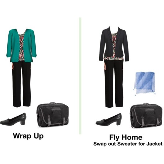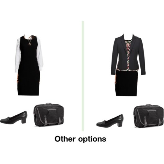 One of Road Warriorette‘s readers asked if it was possible to pack for a four day business trip in a bag that fits under an airplane seat.  Of course she came through with a great post on the subject – “Packing for 4 days in a small bag“.  Her answer focused on business casual which is, perhaps, one of the most tricky dressing styles.  You should really check it out if this is your business style.  My business travel has been slightly different.  I’ve either been in black suit power meetings or long days inside of a laboratory.  Both involve standing for long periods of time – either presenting or observing.  Is it possible to travel with an under seat bag for a power meeting?  Again, the answer is “of course!”